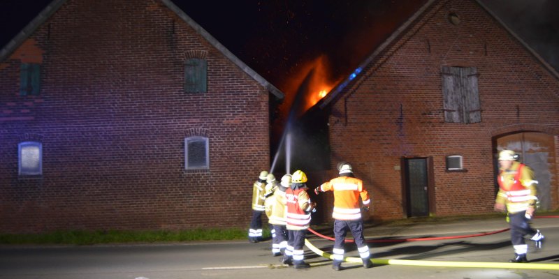 Am Montagabend um 21:49 Uhr wurden zahlreiche Feuerwehren mit dem Text „Feuer Wohnhaus Person in Gefahr“ über ihrer Meldeempfänger nach Schinna gerufen. Am Einsatzort brannte eine Scheune, in der eine kleine Wohnung integriert ist, im Erd- und Dachgeschoß in voller Ausdehnung. Die unverletzten Personen konnte selbstständig das Gebäude verlassen. Zwei Erwachsene und zwei Kinder wurden in eine Wohnung nach Stolzenau gebracht. Zwei weitere Personen kamen in einer Wohnung in Leese unter. Die Flammen schlugen schon aus dem Dach. Durch das schelle eingreifen der Feuerwehren, unter Leitung vom Ortsbrandmeister Uwe Dörge und Gemeindebrandmeister Jürgen Meyer, konnte das Feuer unter Kontrolle gehalten werden. Eine Übergreifen des Feuers in das mit der Scheune verbundene Wohnhaus, in dem sich mehrere Wohnungen befinden, konnte verhindert werden. Von der Drehleiter aus wurde das Dach an mehren Stellen geöffnet, um gezielt den Flamen mit Löschwasser entgegenzuwirken. Nach einer Lagebesprechung gegen 23:00 Uhr wurde verabredet von wo und mit Mitteln die letzten Glutnester gelöscht werden sollten. Die Ortsdurchfahrt war während der gesamten Einsatzzeit gesperrt. Ein Feuerwehrkamerad wurde während des Einsatzes mit Kreislaufproblemen vom Rettungsdienst ins Helios Krankenhaus zur Beobachtung gebracht. Er konnte das Krankenhaus noch in der Nacht wieder verlassen. Die Ermittlungsgruppe der Polizei nahm noch in der Nacht die Ermittlungen zur Brandursache auf. Die Ursache ist vorerst ungeklärt. Die Schadenshöhe noch unbekannt. Im Einsatz waren die Feuerwehren Stolzenau, Landesbergen, Anemolter, Schinna, Holzhausen, Wellie, Liebenau mit Drehleiter, die Einsatzleitung Ort die Logistikgruppe der Samtgemeindefeuerwehr. Die Rufbereitschaft der Feuerwehrtechnischen Zentrale kam mit einem LKW um verbrauchtes Material zu tauschen. Der Hauptamtliche Rettungsdienst, sowie die Johanniter Unfallhilfe waren je mit einem RTW da. Ein Notarzt komplettierte das Rettungsteam. Die Polizei war mit einem Team vor Ort. Später kam die Ermittlungsgruppe hinzu, die das Objekt untersuchten. Das Einsatzstelle wurde am Dienstag von der Staatsanwaltschaft freigegeben. Gegen zwei Uhr war der Einsatz beendet.