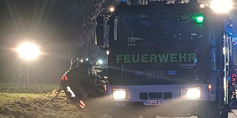(Estorf/Landesbergen) Ein schwerer Verkehrsunfall ereignete sich in der Nacht zu Montag um kurz nach Mitternacht auf der B215 zwischen Landesbergen und Estorf. Eine mit zwei Personen besetzte Mercedes C-Klasse kam aus Richtung Landesbergen kommend in einer langgezogenen Linkskurve nach rechts von der Fahrbahn ab und prallte dort mit einem Baum zusammen. Infolge des Aufpralls schleuderte das Fahrzeug noch etwa 100m weiter, bevor es am Straßenrand auf der Seite zu liegen kam. Ersthelfer versuchten, die beiden Insassen aus dem Fahrzeug zu befreien. Dies gelang ihnen bei der Beifahrerin. Sie wurde schwerverletzt in ein Krankenhaus gefahren. Für den schwerst eingeklemmten Fahrer kam jede Hilfe zu spät, er war bereits beim Eintreffen der Rettungskräfte verstorben. Die Bergung gestaltete sich auf Grund der schweren Einklemmung extrem schwierig. Schweres technisches Gerät musste eingesetzt werden. Es dauerte über eine Stunde, bis der Leichnam befreit werden konnte. Im Einsatz waren die Feuerwehren Estorf, Landesbergen, Leeseringen und Nienburg, wobei die Nienburger Fahrzeuge schon bald zu ihrem Standort zurückkehren konnten. Zudem waren der Rettungsdienst mit mehreren Rettungswagen und einem Notarzt sowie die Polizei aus Nienburg und Stolzenau vor Ort. Zur Klärung der Unfallursache wurde ein Sachverständiger hinzugezogen. Hierfür galt es, die Unfallstelle auszuleuchten. Für die Dauer der Unfallaufnahme war die B215 bis in den Morgen gesperrt, der Verkehr wurde umgeleitet. Der Einsatz endete für die letzten Kräfte der Feuerwehr gegen 7 Uhr.