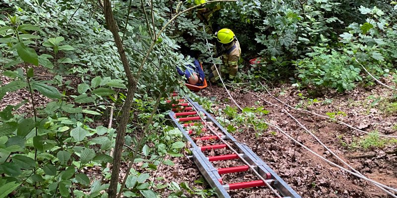 Mit Beginn des Sommers steigt auch die Wahrscheinlichkeit von Vegetationsbränden. Bei solchen Einsätzen werden die Einsatzkräfte regelmäßig mit starken Ausbreitungen bei einer gleichzeitig schlechten Wasserversorgung konfrontiert. Da insbesondere die Zeit hierbei eine wichtige Rolle spielt, stand ein entsprechendes Übungsszenario beim jüngsten Übungsdienst der 2. Gruppe auf dem Plan. Angenommen wurde ein Bodenfeuer in einem Wald ohne direkt angrenzende Wasserentnahmestelle. Die ersteintreffende Besatzung des Tanklöschfahrzeugs startete nach Erkundungs- und Sicherungsmaßnahmen einen begrenzten Löschangriff zwei D-Rohren um die Ausbreitung zu begrenzen aber gleichzeitig den Wasservorrat des Fahrzeugs nicht zu schnell aufzubrauchen. Gleichzeitig baute die Besatzung des Hilfeleistungslöschfahrzeugs von einem entfernten Hydranten eine Wasserförderung über eine lange Wegstrecke zur Versorgung des TLFs auf, sodass anschließend mit gesicherter Wasserversorgung weitere C-Rohre zum Löschangriff in Betrieb genommen werden konnten. Schlussendlich änderte sich das Übungsszenario schlagartig, als angenommen wurde, dass ein Kamerad bei Erkundungen im Wald ca. 5m tief in eine vermutliche ehemalige Sandkuhle stürzte und es diesen schnell zu retten galt. Nachdem sich ein Trupp abgesichert in die Kuhle abgeseilt und die Erstversorgung durchgeführt hat, wurde der abgestürzte Kamerad mit der Schleifkorbtrage über Leitern gerettet.