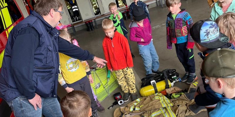 Die Notrufnummer war allen Kindern schon bekannt, jedoch konnten sie noch viel Neues über die Ausrüstung von Feuerwehrmännern erfahren.