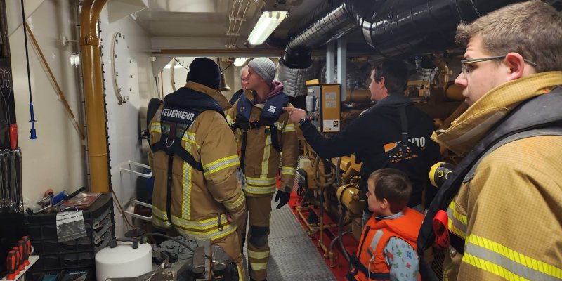 Die Kameraden der Bootsgruppe haben bei ihrem jüngsten Dienstabend ein Binnenschiff, welches am Kraftwerk angelegt hatte, besichtigt und sich dabei einmal die Gegebenheiten von der Besatzung näher bringen lassen.
