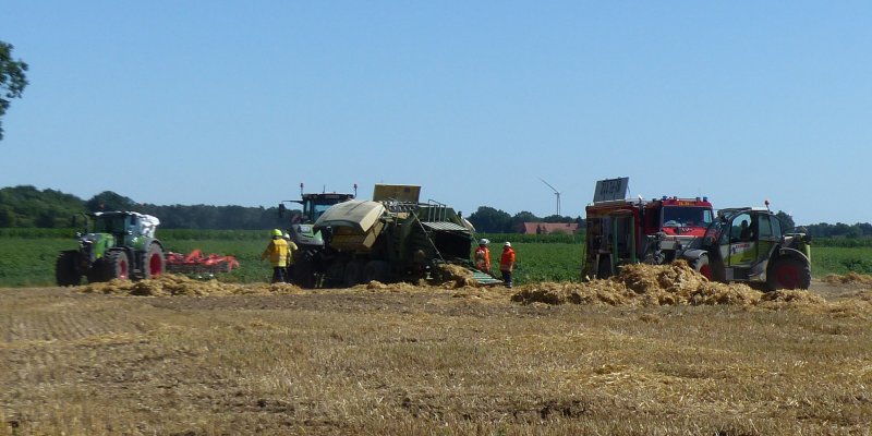 Beim Pressen von Stroh im Bereich des Hirtenweges in Leese bemerkte der Fahrer des Gespannes Rauch im vorderen Bereich der Presse.